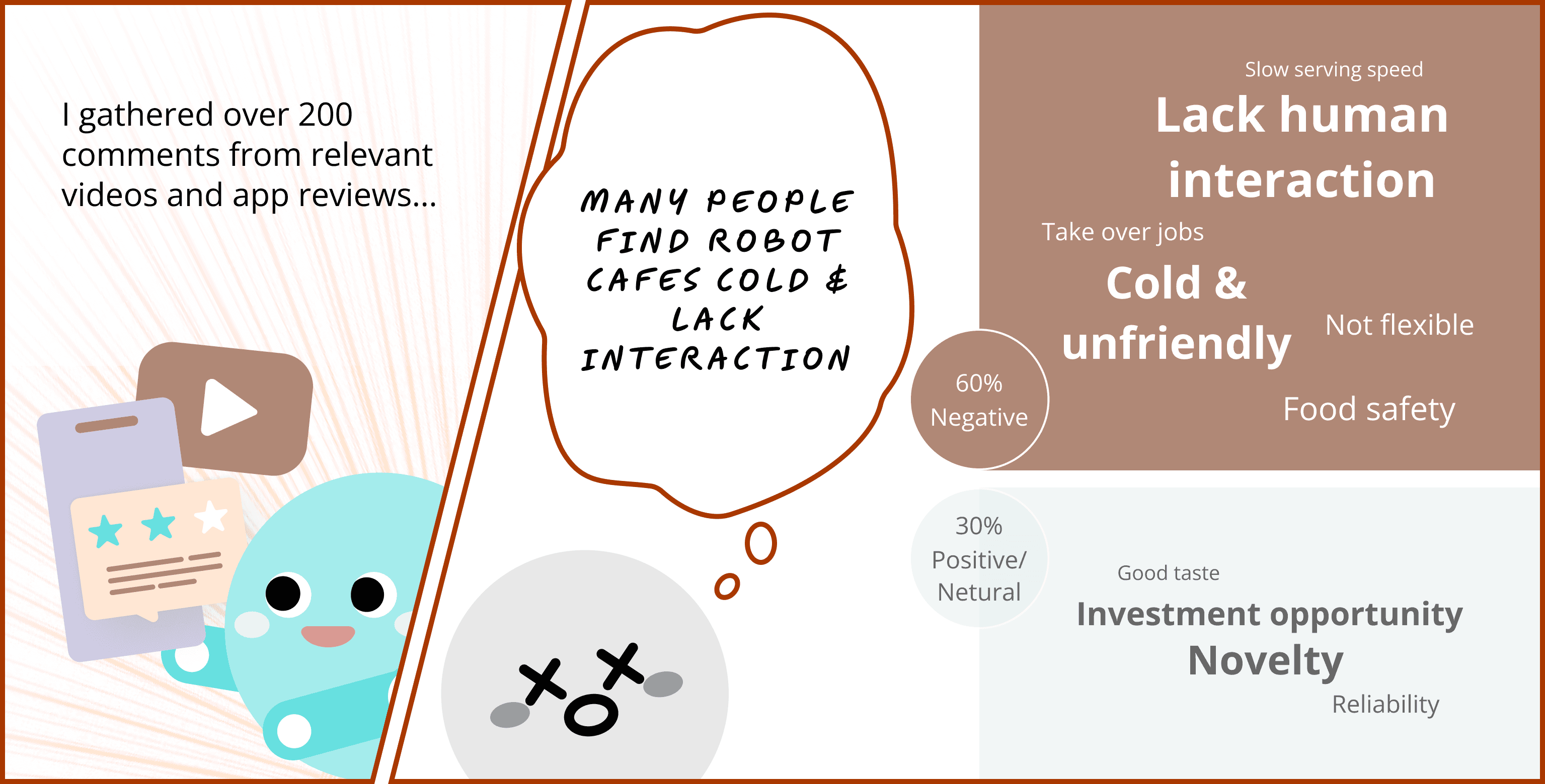 Robot cafes are a new concept and might face some challenges along the way. Getting a sense of how people feel about them is key. These insights will help guide our design.