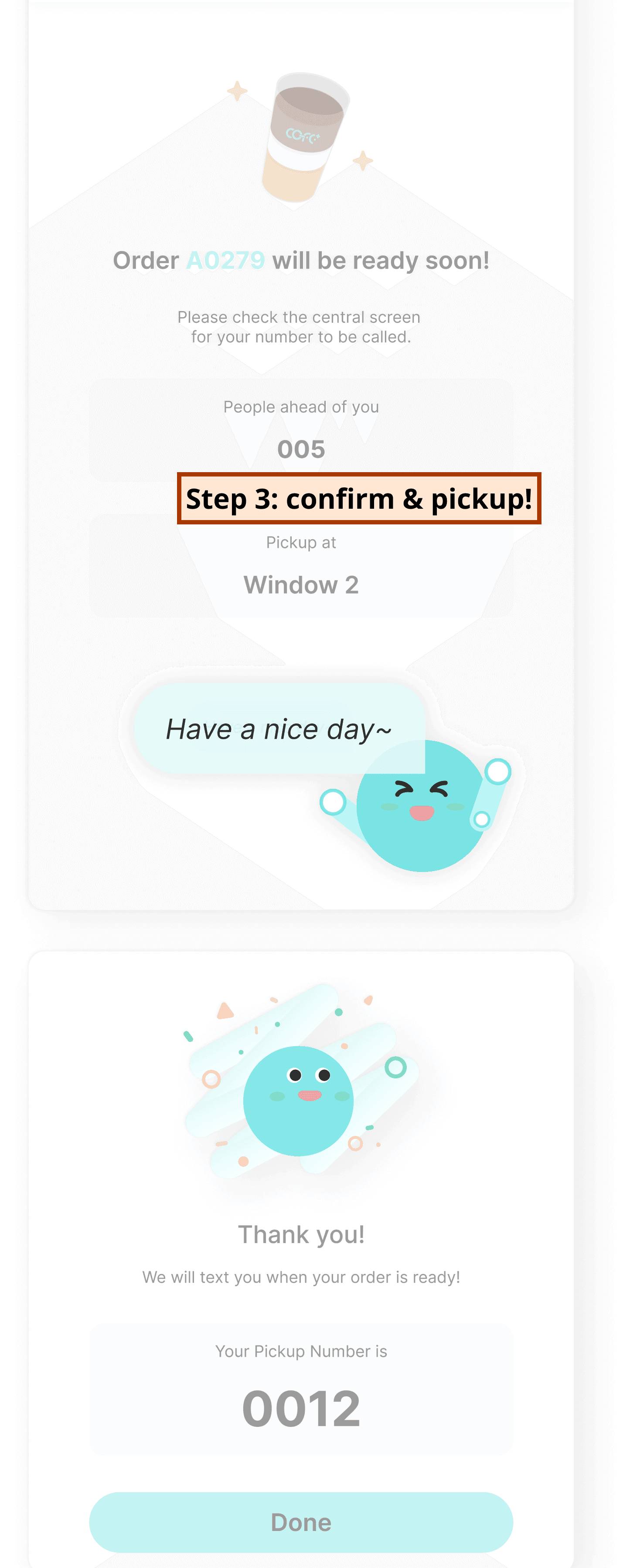 Throughout the ordering & pickup experience, we wanted our system to be interactive and warm.